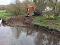 We are delighted to see that after significant pressure from the Parish Council, the outfall for the Calenick Flood Alleviation Scheme is at last being dredged to ensure that it can perform to its design specification. The Scheme, which was installed in the mid-90s to cope with the additional runoff into the River Tinney created by the new development in Gloweth, was funded by the Gloweth developer. However, as the developer went bankrupt before the scheme was completed, it was never formally adopted by Carrick District Council who were responsible for the management of the River Tinny at that time. The Environment Agency is now the Risk Management Authority for the River Tinney, but had refused formally adopt the flood alleviation scheme until it was brought up to specification. Two years ago the ‘missing’ channel was finally dug to connect the scheme’s inlet to the river North of the A39 at the bottom of Arch Hill. The final piece of work to dredge the scheme at the outfall is finally being completed with funding from Cornwall Council. This will hopefully enable the scheme to be formally adopted by the Environment Agency and maintained into the future.